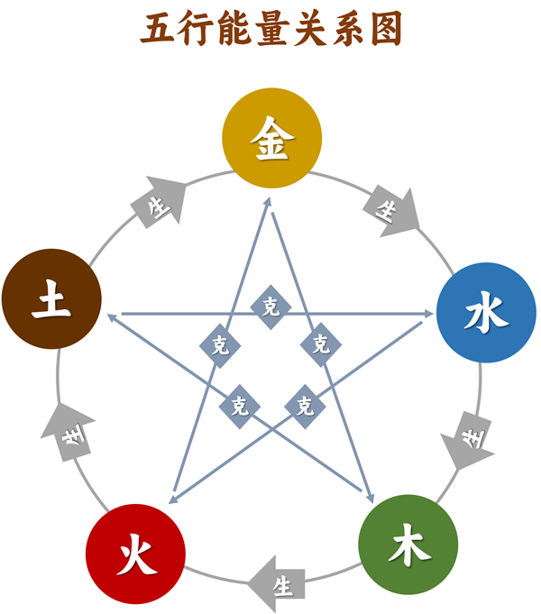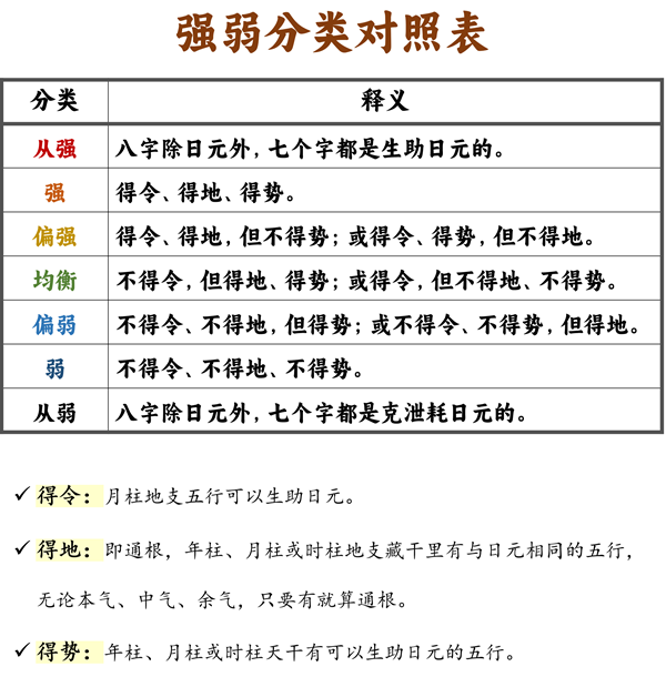 步骤3、4参考下述《五行能量关系图》《强弱分类对照表》。